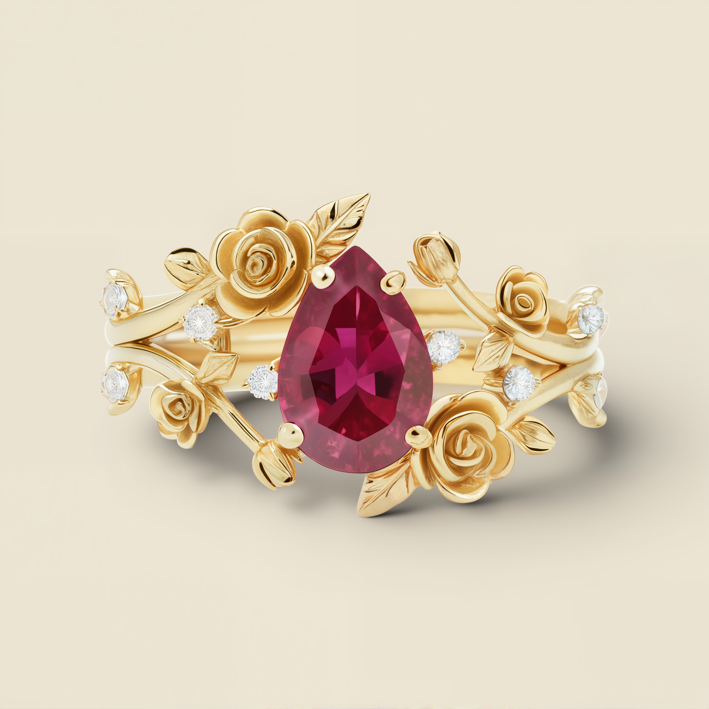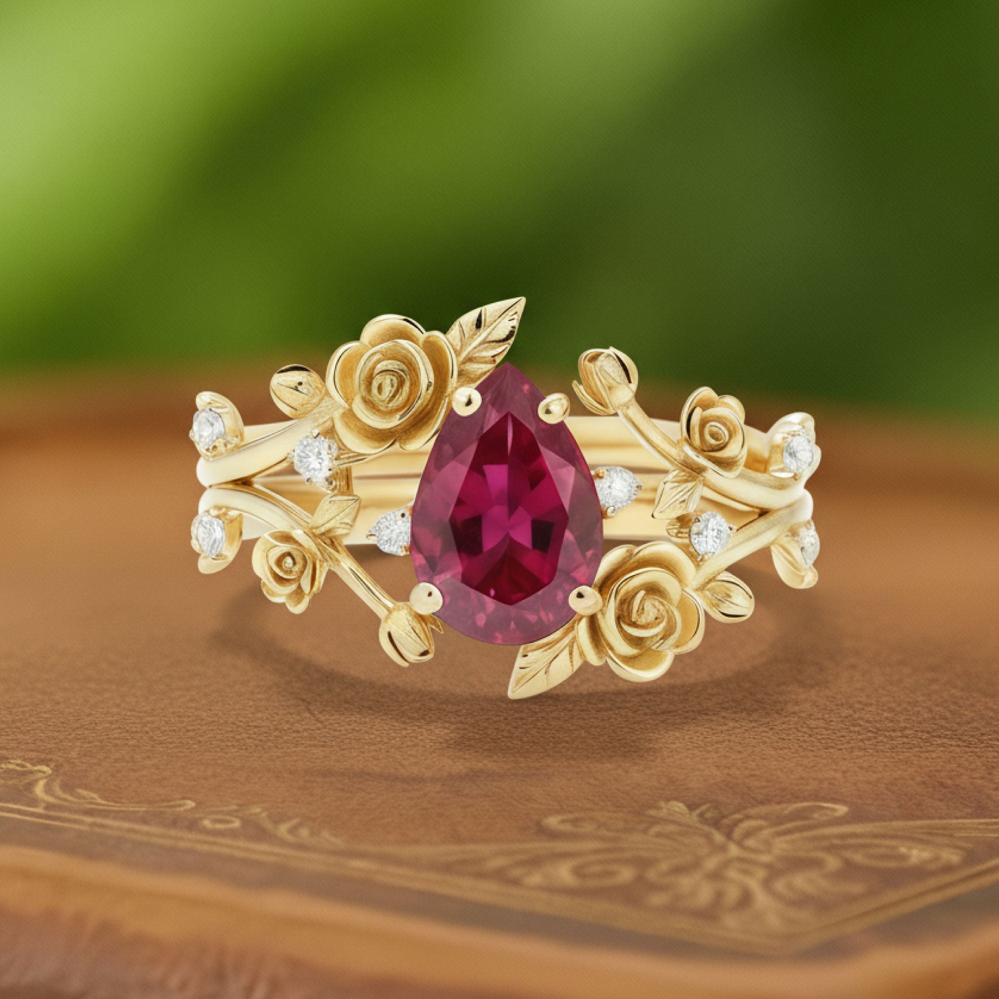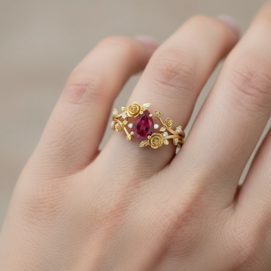 Blazing Vine | Pear Ruby & Sculptural Rose Garden Bridal Set 2pcs - Flora Cascade