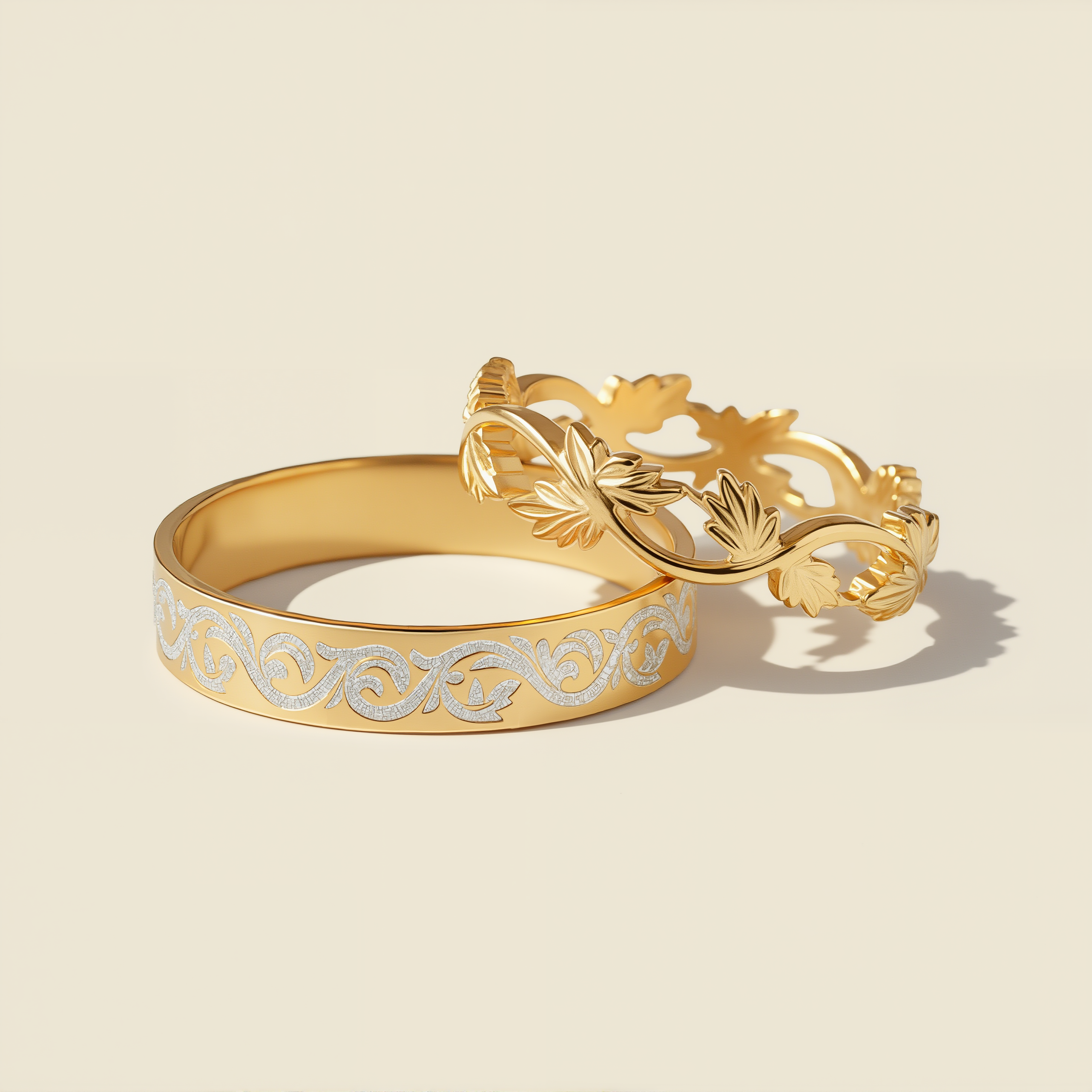 Eternal Intertwine | Filigree & Dual-Tone Engraved Wide Wedding Band Set