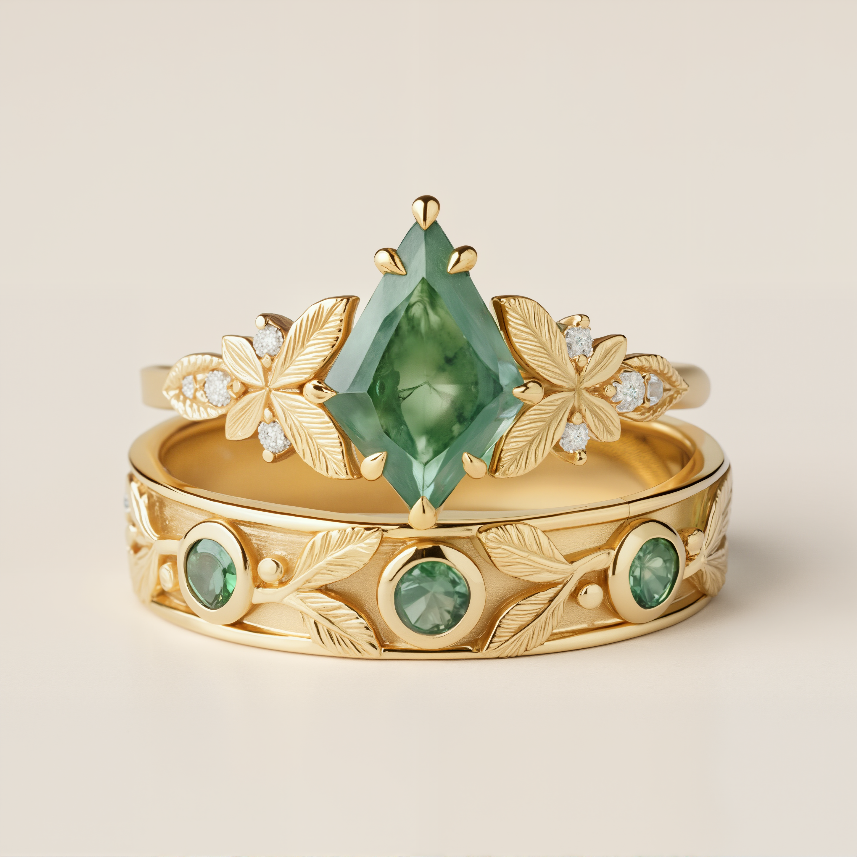 Woodland Whisper | Kite-Cut Moss Agate & Green Garnet Leaf Matching Set 2pcs - Dryad Vow